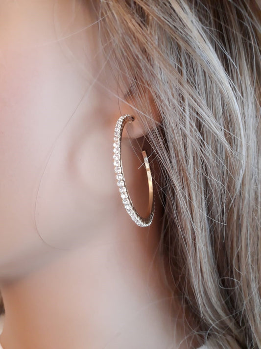 Open Whole Crystals Earring Finished in 18K Yellow Gold Women Jewelry 36558