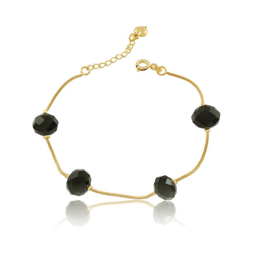 Black Crystals Flexible Bracelet Finished in 18K Yellow Gold Women Jewelry 86028