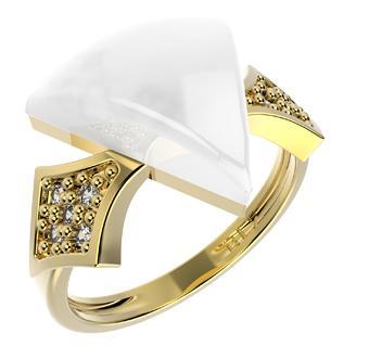 Natural Stone and CZ Ring Finished in 18K Yellow Gold Women Jewelry 14245